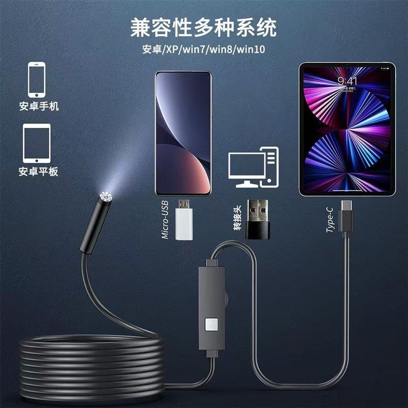 8mm内窥镜200万高清摄像头防水安卓手机汽车修开锁工业管道空调