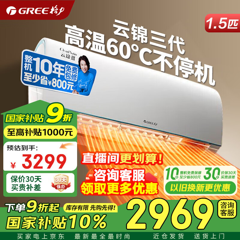 格力空调 云锦三代/全能王 1.5匹 新一级能效 变频冷暖 空调挂机 京东官方正品 家电国家补贴 以旧换新 1.5匹 云锦三代 新一级能效【 冷酷外机】