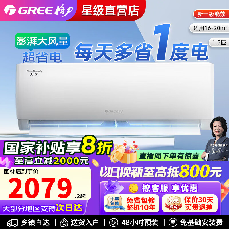 格力空调【国家补贴20%】天仪1.5匹/3匹 新一级能效 省电变频冷暖 56℃净菌自清洁 壁挂式卧室挂机柜机 1.5匹 一级能效 【新品天仪】适用16-20㎡ 【含基础安装价格】