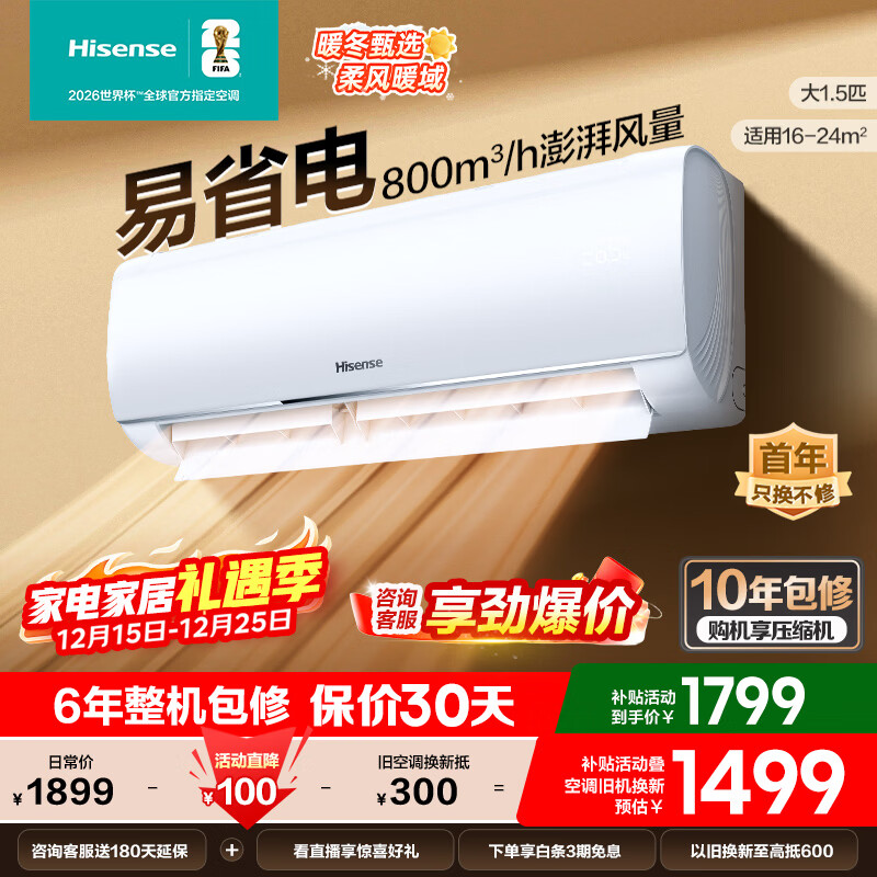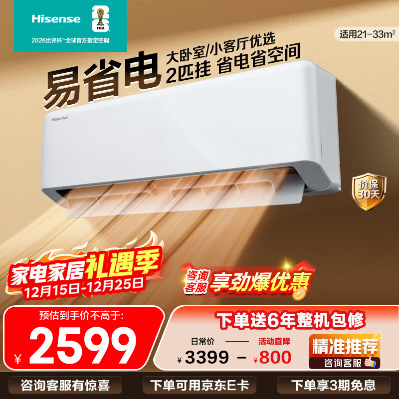 海信(Hisense)大1匹/1.5匹 【咨询抢大额优惠】 易省电 AI省电 新一级 空调挂机 大风量 速冷暖 变频防直吹 空调 大1.5匹 一级能效 E290【咨询客服领红包】