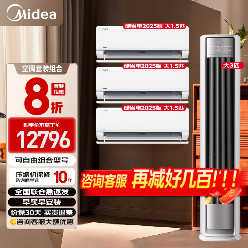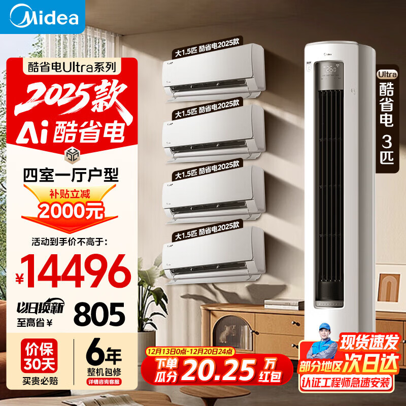 美的(Midea)空调套装 酷省电新款系列 挂机立式柜机新一级能效变频冷暖 家用节能套装 一套购齐 酷省电2025款+酷省电Ultra(四室一厅)