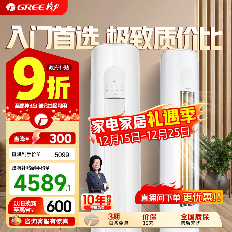 格力(GREE)天仪 新一级能效 变频冷暖 净菌自洁 出风口可拆洗 客厅圆柱立式柜机空调 以旧换新 家电国家补贴 天仪 一级能效 2匹