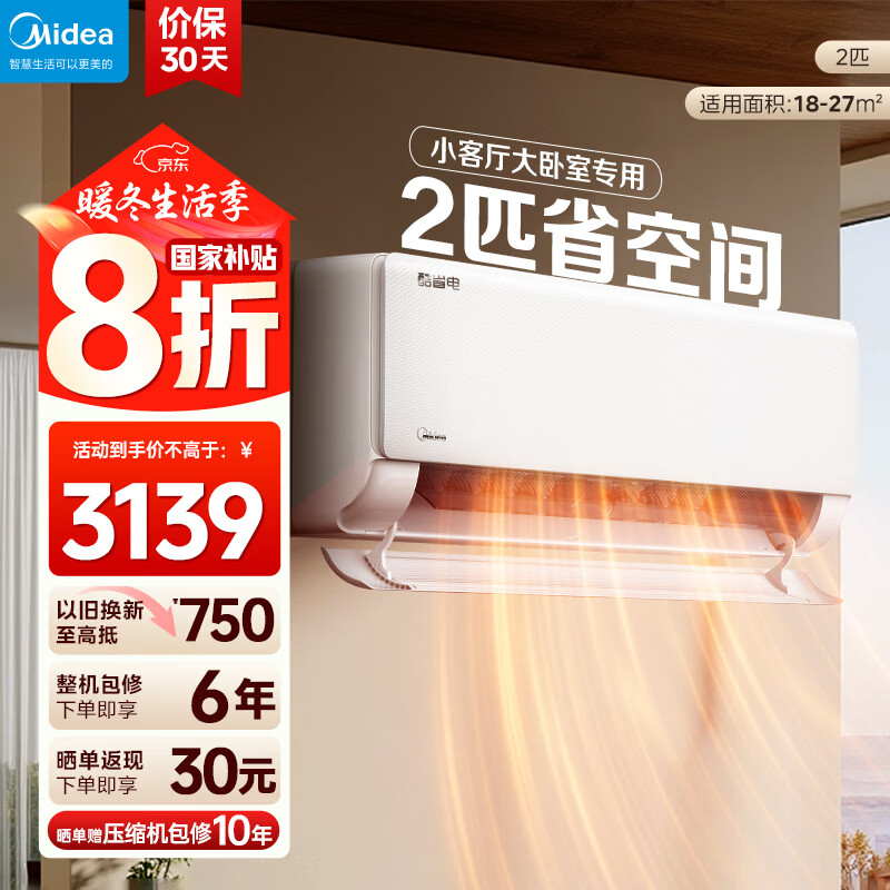 美的(Midea)酷省电 空调挂机 2匹 新一级能效全直流变频冷暖 节能省电 自清洁 壁挂式空调挂机性价比 国家补贴 酷省电 2匹 省电28% 一级能效