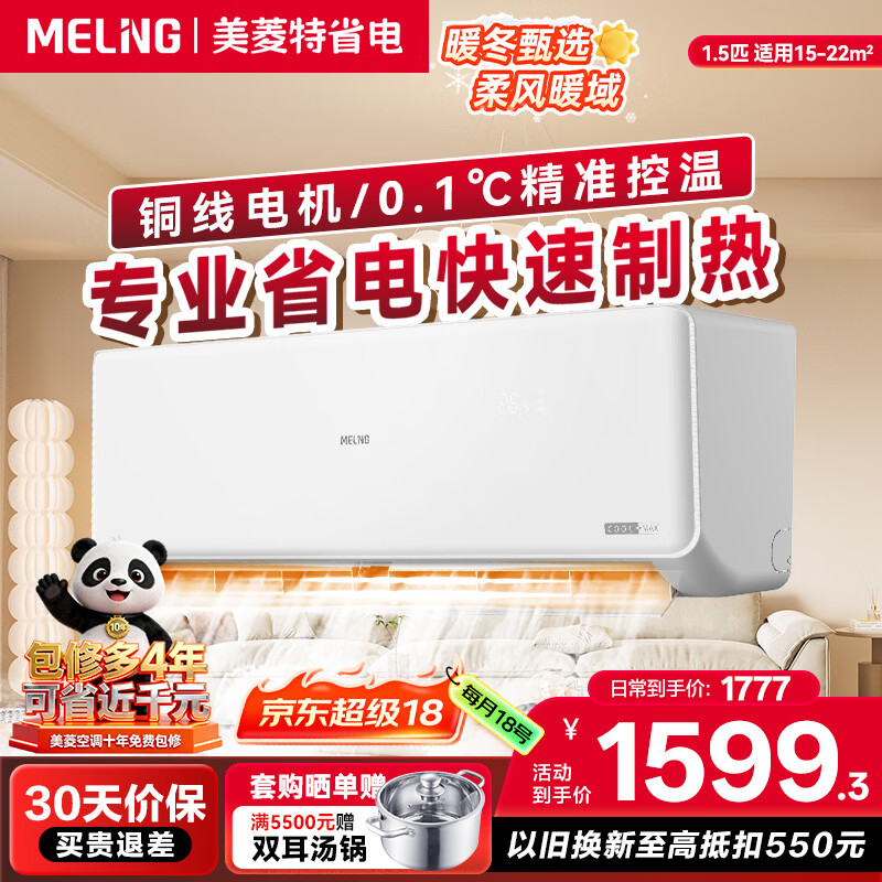美菱特省电空调 家电国家补贴20% 大1.5匹 新一级能效 以旧换新 变频冷暖卧室空调挂机 节能静音防直吹 特省电 大1.5匹 一级能效特省电【10年包修】