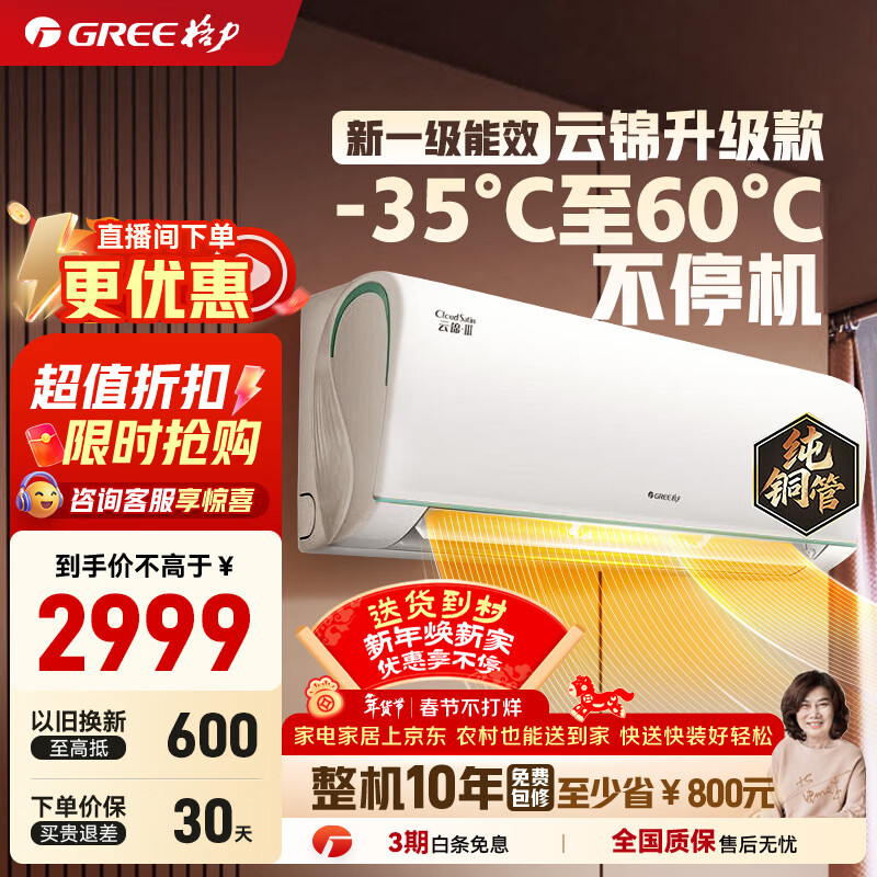 格力(GREE)空调挂机云锦三代/云锦pro新一级能效变频冷暖 自清洁 WIFI壁挂式卧室空调挂机 家电补贴20%空调 1匹 云锦三代新升级款