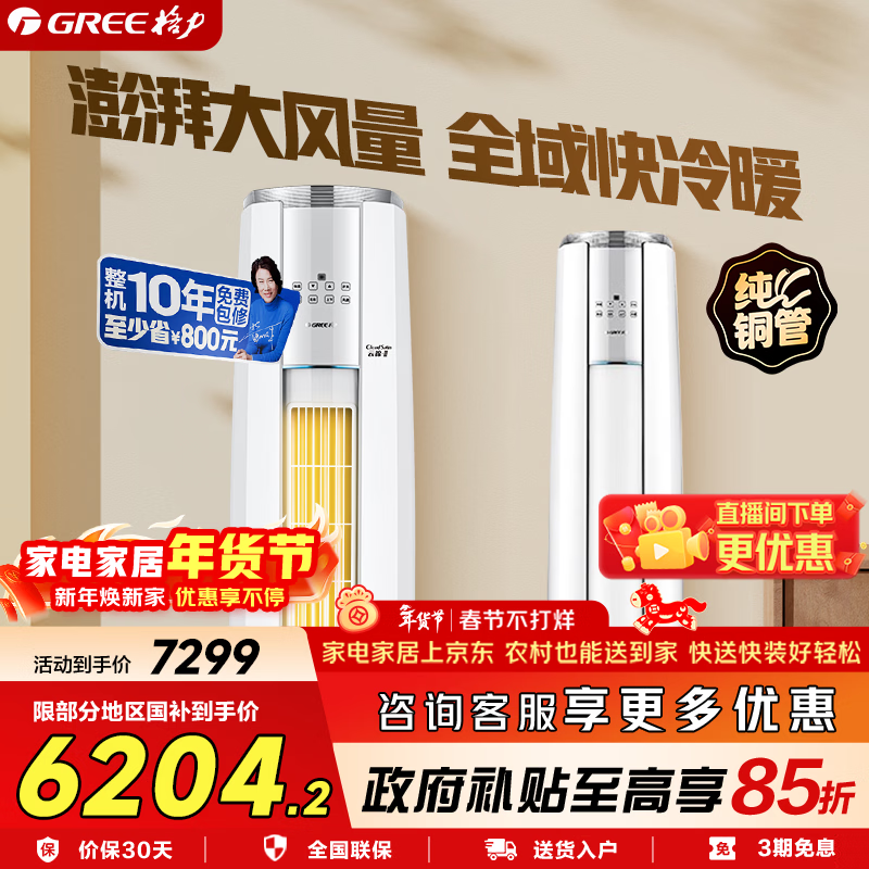 格力(GREE)空调3匹 云锦三代/云锦pro 一级能效变频冷暖 高温自清洁 WIFI智控节能省电 客厅圆柱空调立式柜机 云锦III 3匹 冷酷外机【店铺热销】