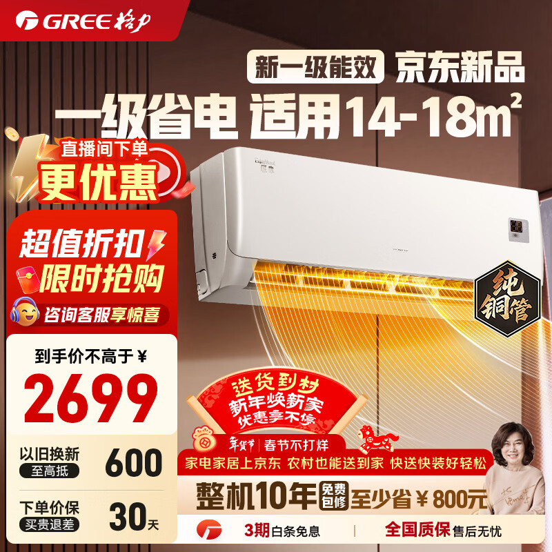 格力空调 1.5匹 新一级能效 变频冷暖 卧室空调挂机 京东官方正品 家电焕新补贴 以旧换新 大1匹 新一级能效【适用10-15平米】