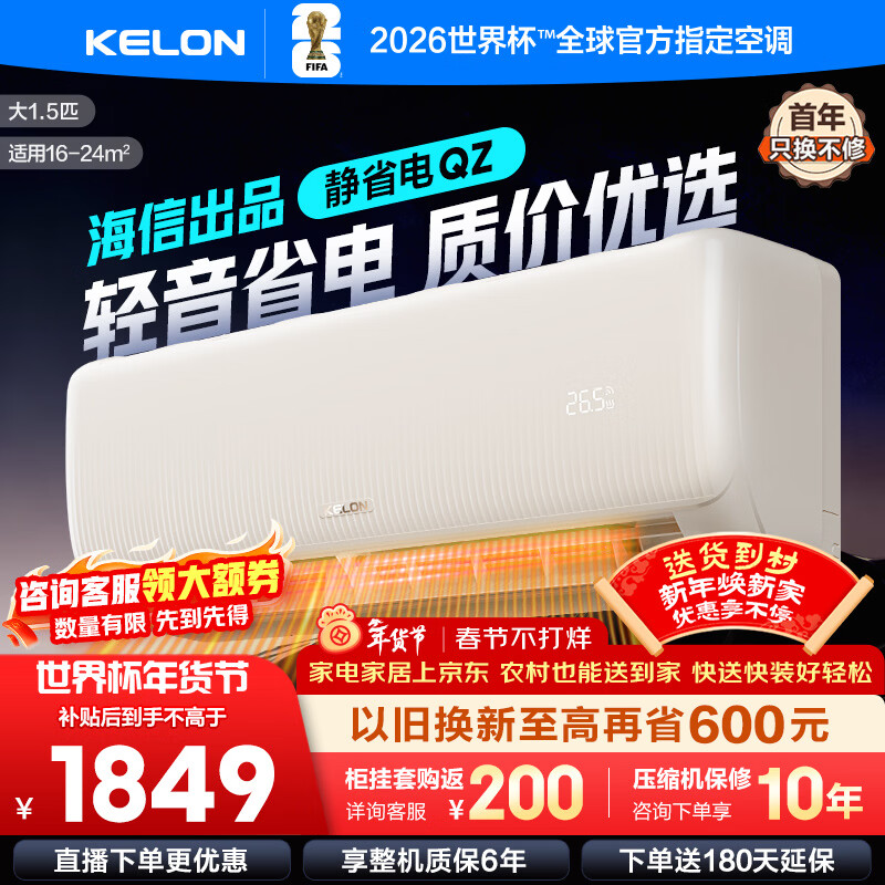 科龙(KELON)空调海信出品 大2匹/大3匹挂机 询单减200 静省电 新一级 大风量冷暖变频 壁挂式客厅商用以旧换新 大1.5匹 一级能效 手机智控+柔风舒适 下单享压缩机十年包修权益