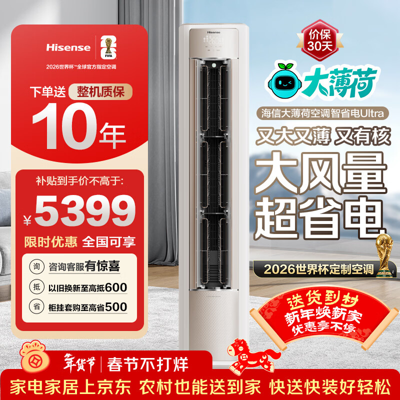 海信(Hisense)大薄荷空调智省电Ultra大3匹 世界杯定制空调国家补贴15% 新一级能效自然风立式空调柜机72E370Pro 智省电 大3匹 大薄荷Ultra十年质保 咨询客服有惊喜