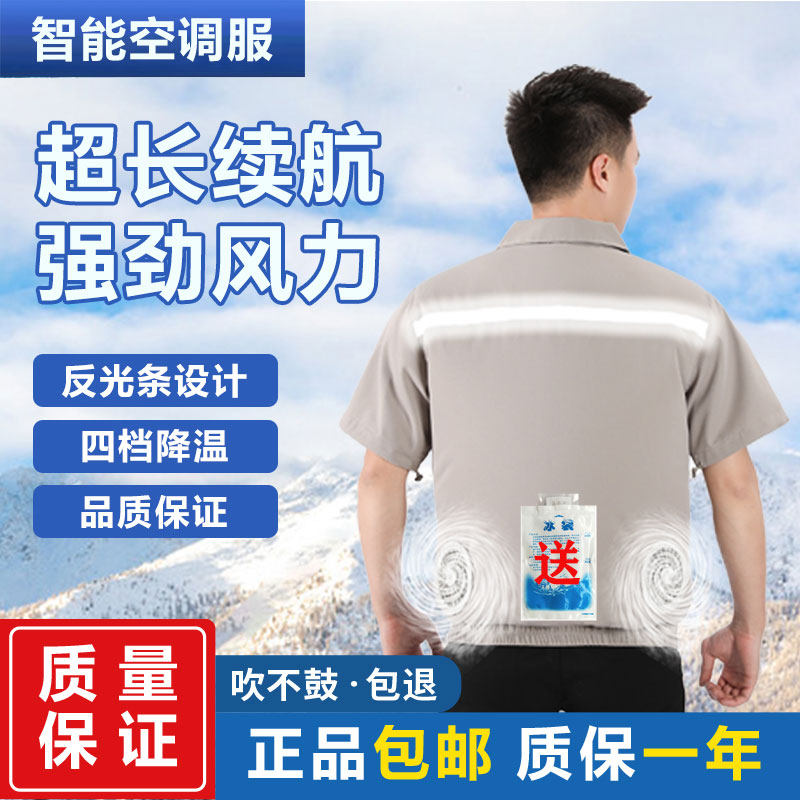 夏降温短袖空调服宽松透气制冷工作服夜间反光工地建筑劳保风扇服