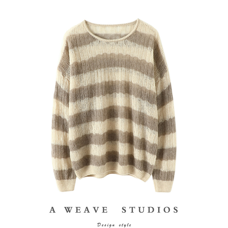 人间太值得~夏精纺山羊绒衫女桂花针宽松薄款套头衫空调衫防晒衫