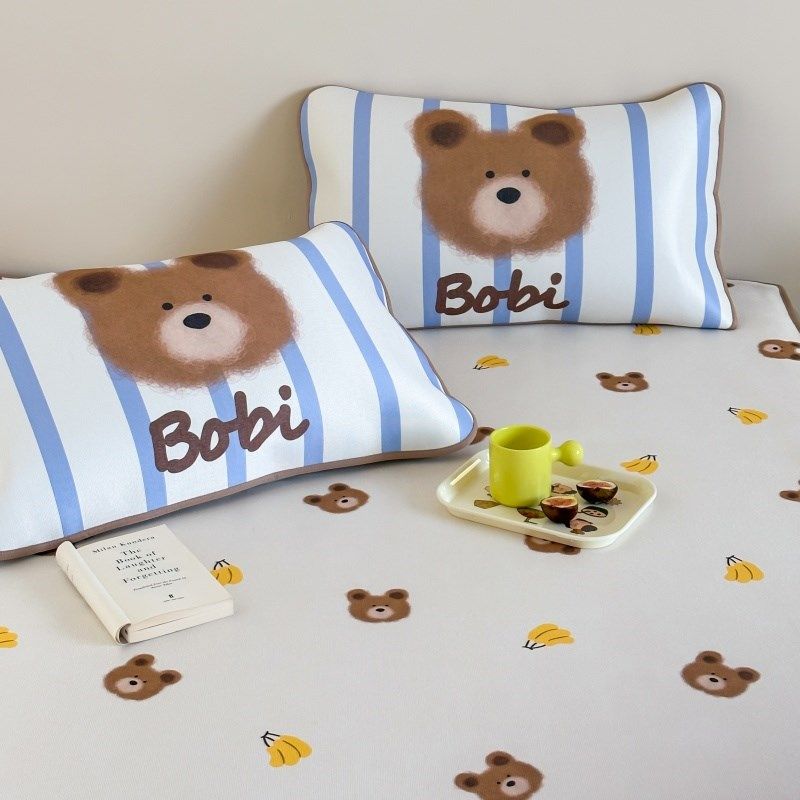 夏季可爱卡通风冰丝凉席三件套床席床笠款儿童可水洗可折叠空调席