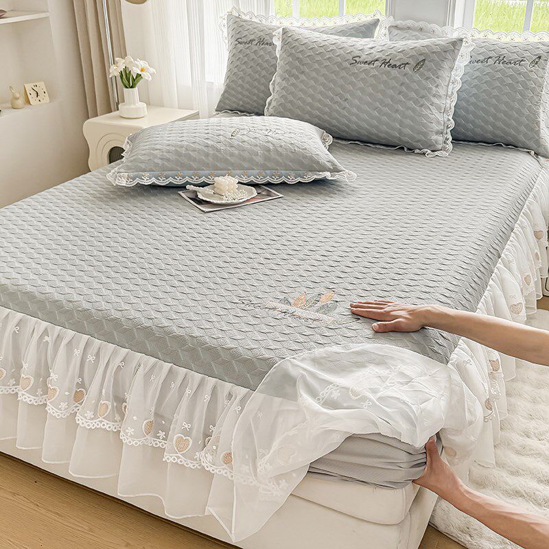 夏季提花冰豆豆凉席三件套床裙款花边冰丝席床罩可机水洗空调软席