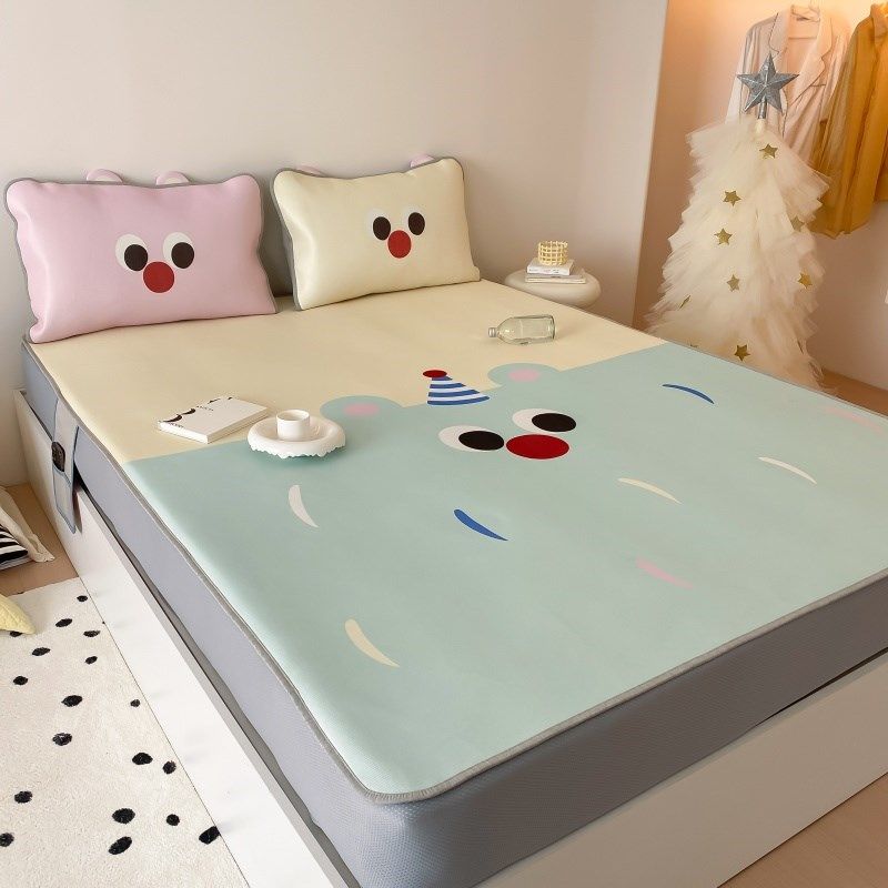 卡通可爱ins风冰丝凉席三件套可折叠可机洗夏天空调软席床笠款