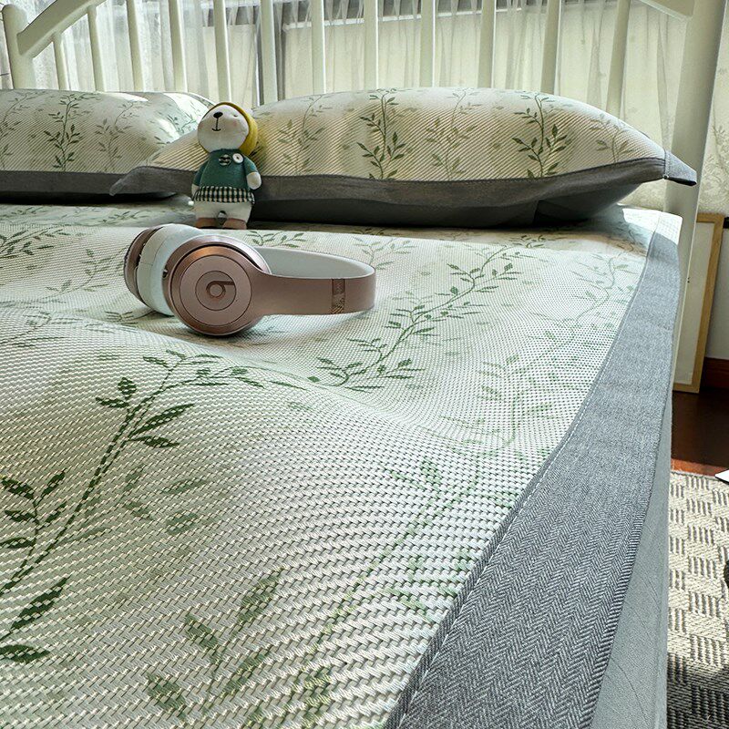 速发可机洗空调席席藤洗上季床夏席子可水席冰藤席凉席三件套碎花