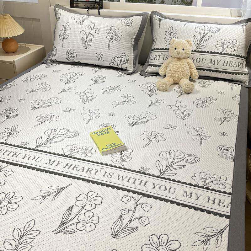 爆款数码印花高克重冰丝凉席三件套可水洗折叠夏季可机洗空调软席