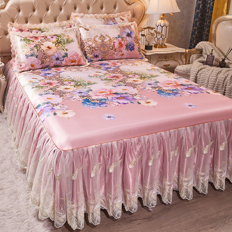新款夏季A类e冰丝凉席三件套床裙款高级感花边可机水洗空调软席子