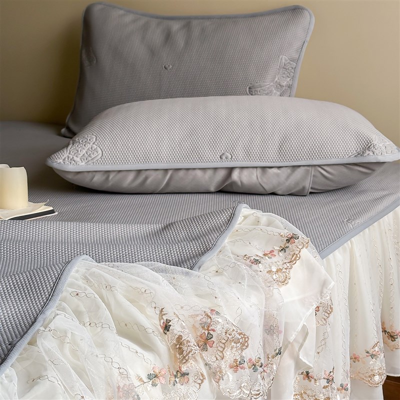 法式蕾丝花边夏季凉感p冰丝凉席三件套公主风空调软席子可折叠水