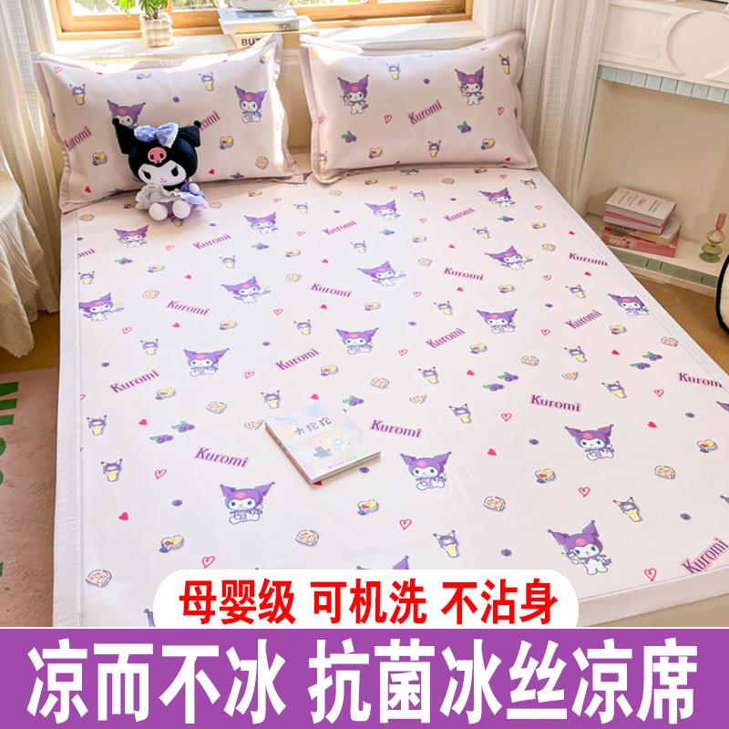 2025新款库洛米冰丝凉席三件套儿童空调软席子学生夏季可水洗折叠