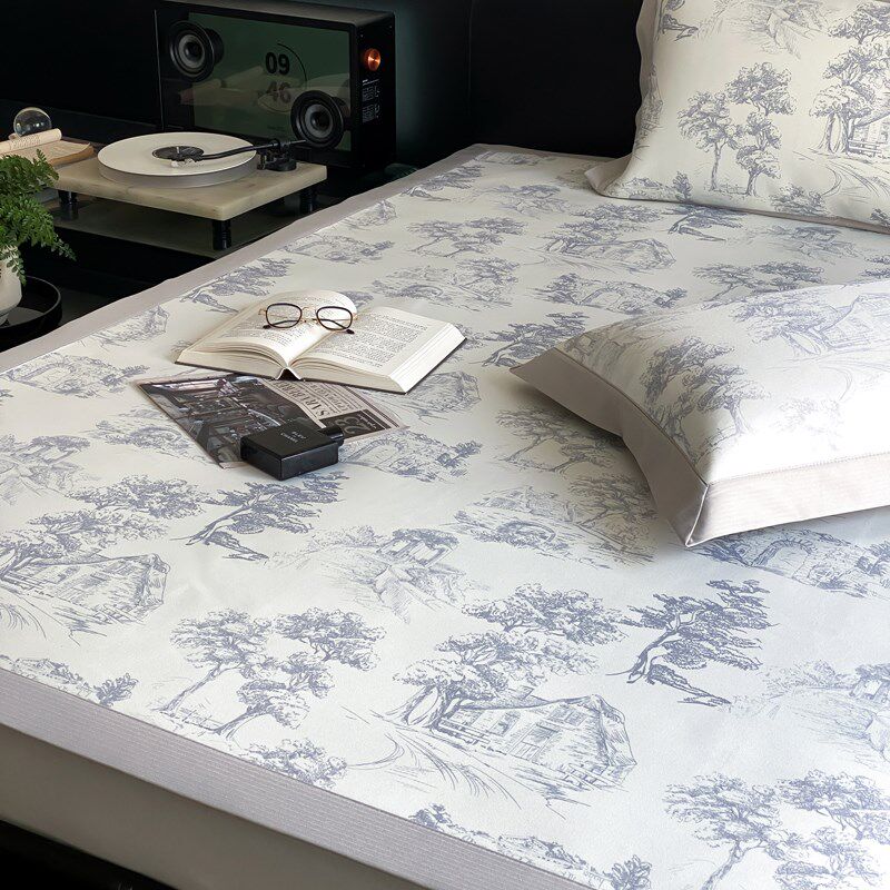 可折叠夏季冰丝凉席床裙席子秋夏两用床单水洗软床垫空调凉垫家用