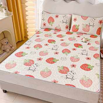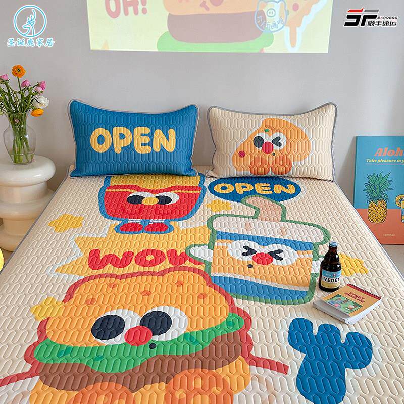 速发可爱季床笠款乳胶凉水三件套可席洗夏熊席儿童学生空调席