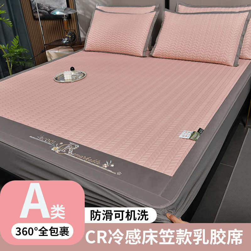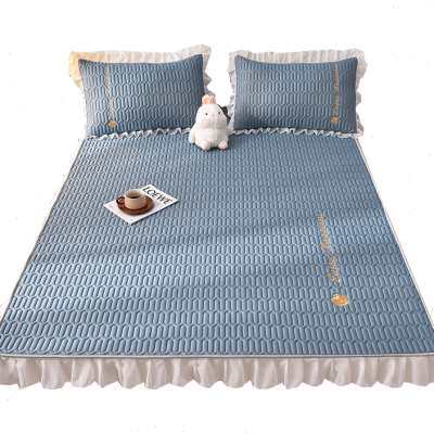 2023新款A类凉感冰丝加厚乳胶凉席三件套牀笠款带裙边高档空调凉