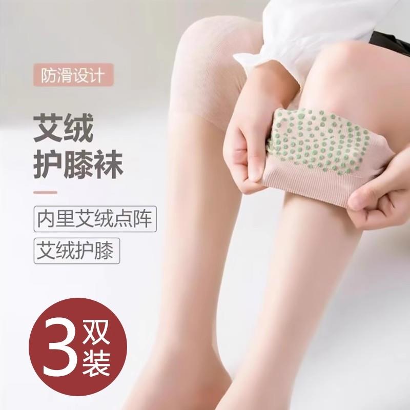 艾绒空调房护膝丝袜女夏季薄款防勾丝保暖预防老寒腿中长筒过膝袜