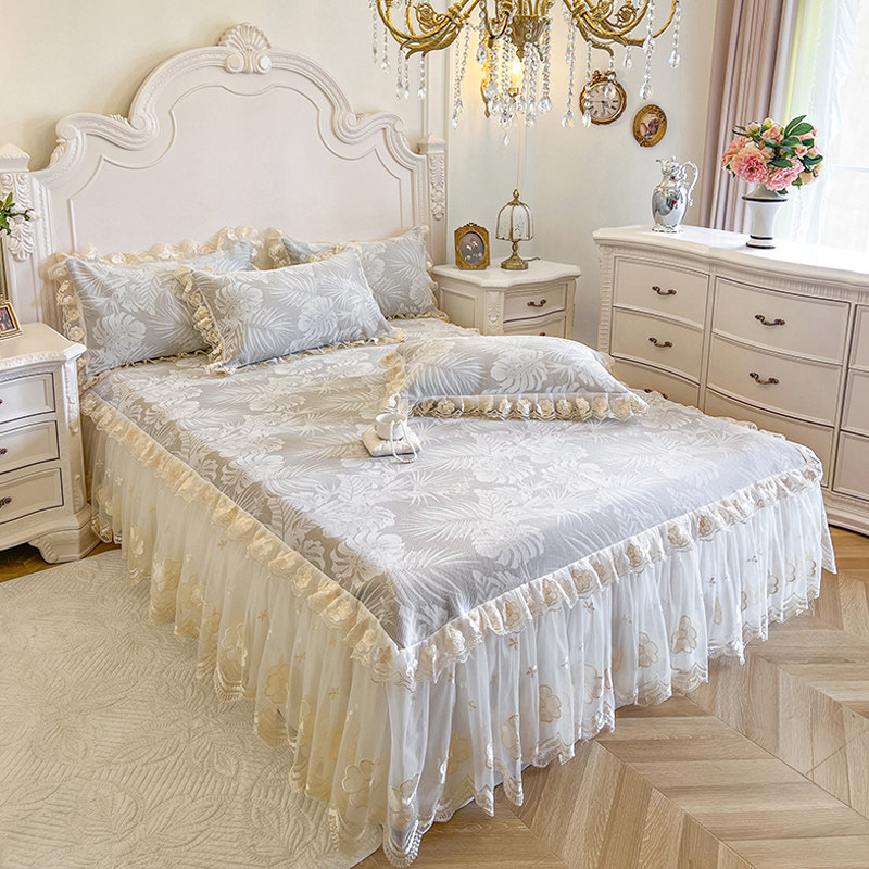 法式少女蕾丝床裙冰丝凉席三件套1.8m床夏空调可水洗折叠软凉席子