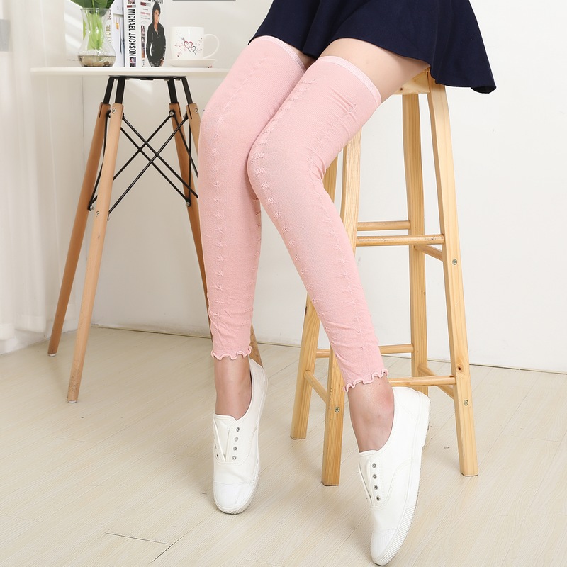 日系春夏薄棉防晒堆堆袜套长筒袜过膝女空调房保暖折皱