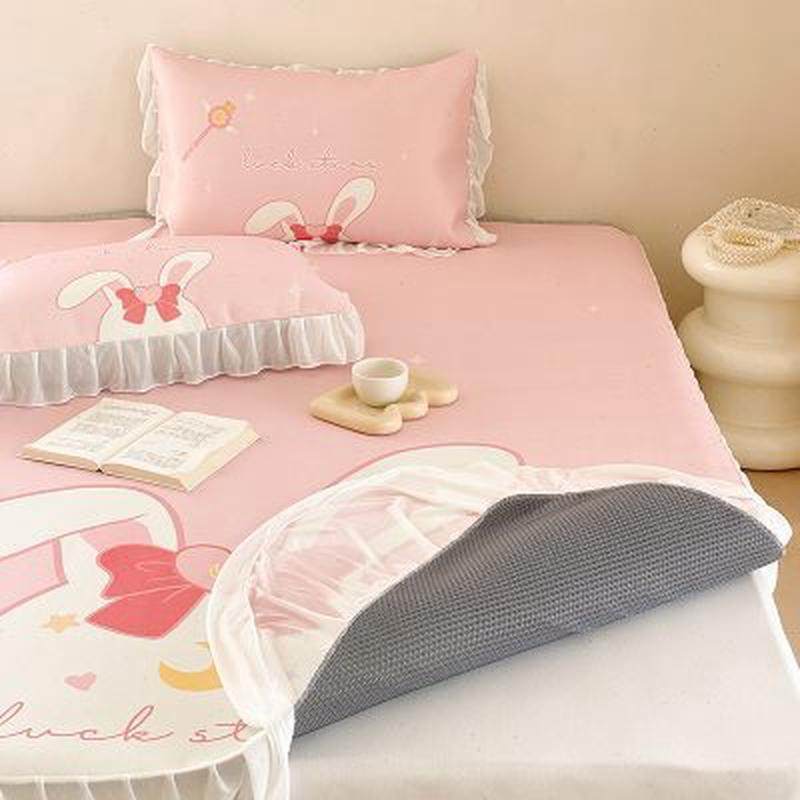 少女粉夏季超冷感凉席三件套冰丝透气可水洗床笠款空调软席可折叠