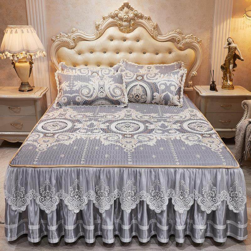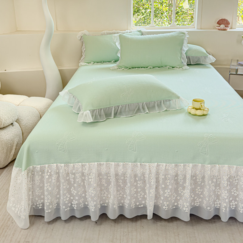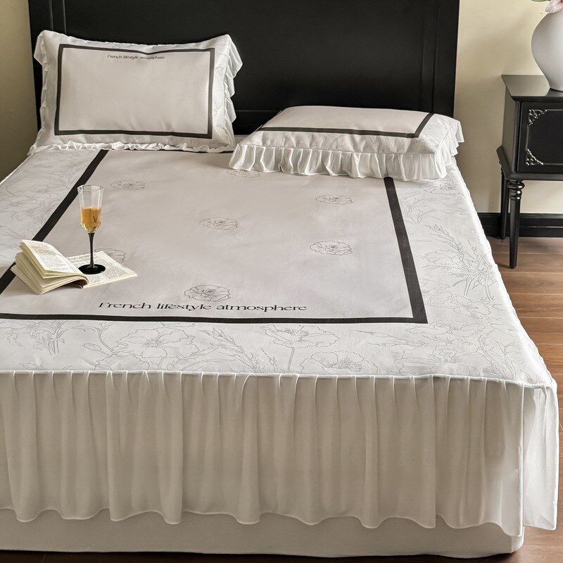 新款夏季冰丝凉席绣花凉感三件套公主风床裙款可水洗空调软席