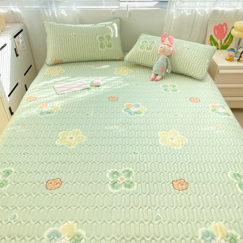 小清新绿色可爱花朵乳胶凉席床单三件套学生宿舍冰丝席子空调软席