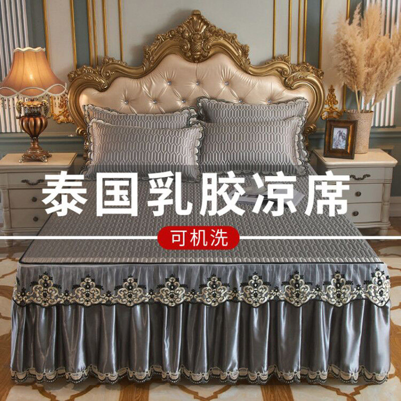 乳胶凉席床裙款夏季可水洗折叠公主风花边家用冰丝空调席子三件套