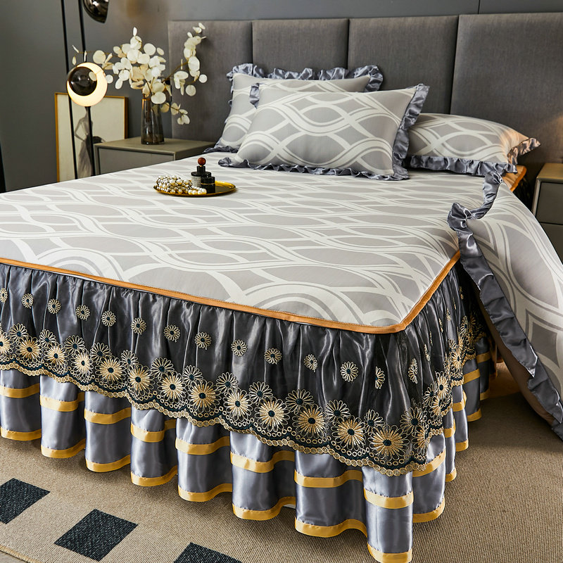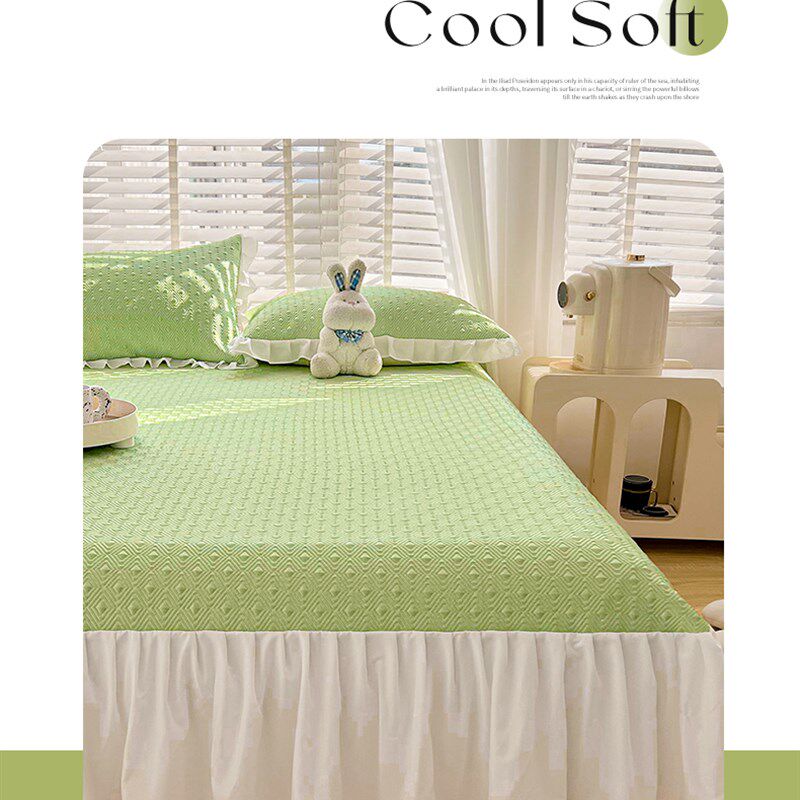 欧式凉感冰丝席床裙款三件套夏季可拆卸花边凉席夏天空调软席凉垫
