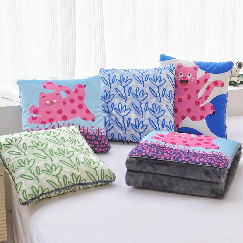波点猫印花抱枕被子两用毯子二合一 加厚车载沙发毯空调毯披肩毯