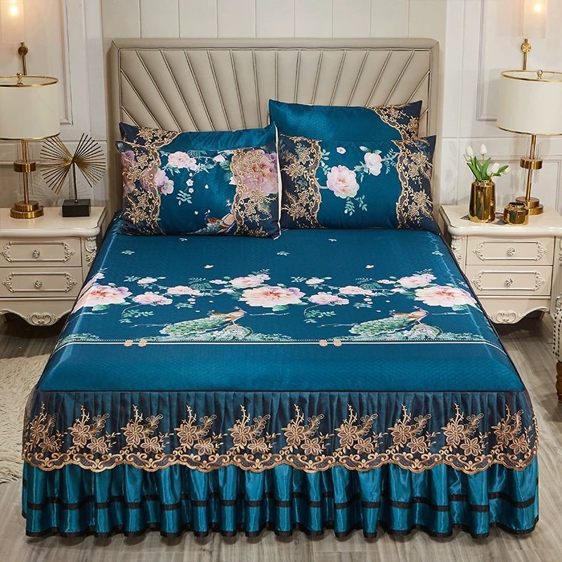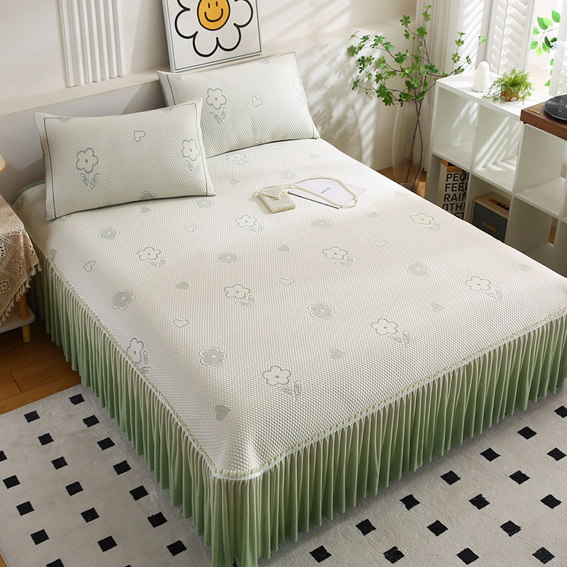 新款冰丝凉席三件套夏季床裙款1.8m双人防滑可折叠水洗床罩空调软