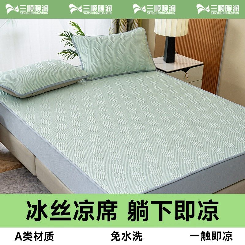 冰豆豆冰丝凉席三件套2025新款床单垫人可水洗夏天空调裸睡软席子