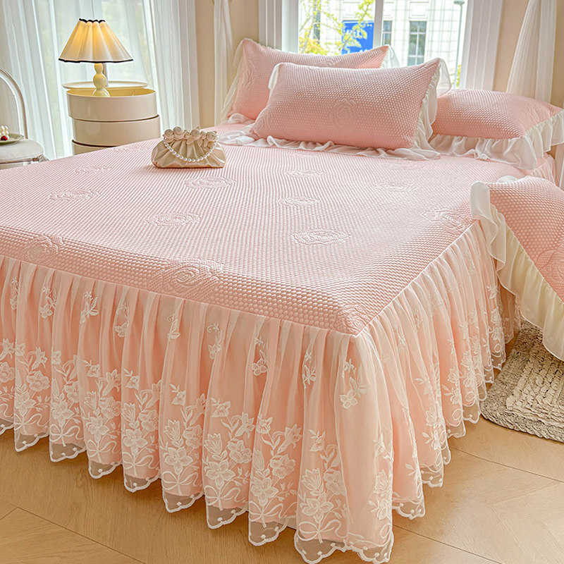 夏季公主风凉感丝豆豆冰丝凉席三件套可水洗机洗床盖床裙款空调席