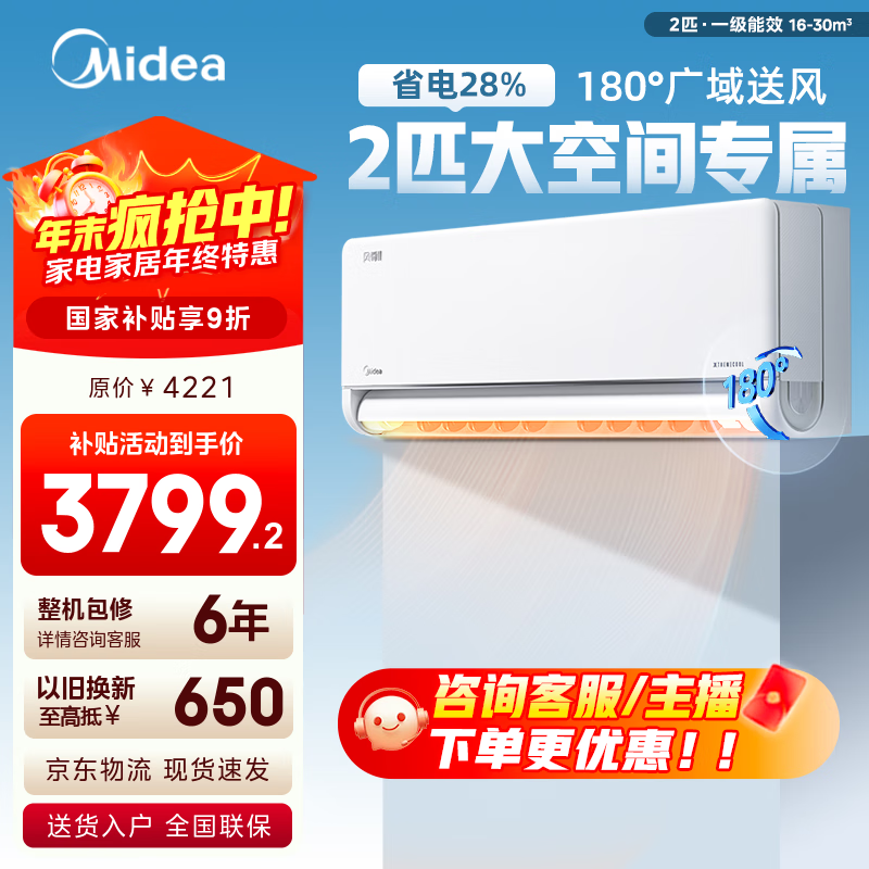 美的新一代舒适空调 2匹 风尊二代 智能变频冷暖壁挂式挂机 一键防直吹 以旧换新 家电国家补贴20% 风尊二代 2匹 省电28%