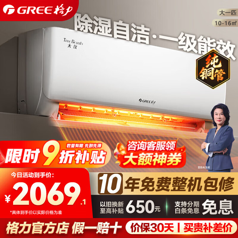 格力(GREE)空调1.5匹/大一匹 天仪 挂式机 壁挂式卧室空调挂机 新一级能效 变频冷暖自清洁以旧换新 国家补贴 天仪 大1匹 一级能效丨适用【10-16㎡】