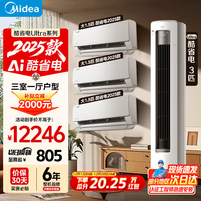美的(Midea)空调套装 酷省电新款系列 挂机立式柜机新一级能效变频冷暖 家用节能套装 一套购齐 酷省电2025款+酷省电Ultra(三室一厅)