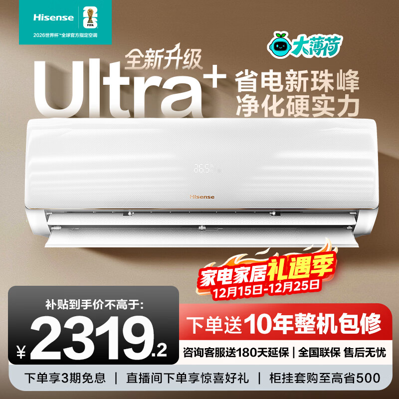 海信(Hisense)大薄荷空调 大1.5匹挂机 询单优惠 智省电Ultra 新一级 双翼定制风 内外机双排倍省电 APF高达6.2 智省电 大1.5匹 一级能效【Ultra+】负离子版