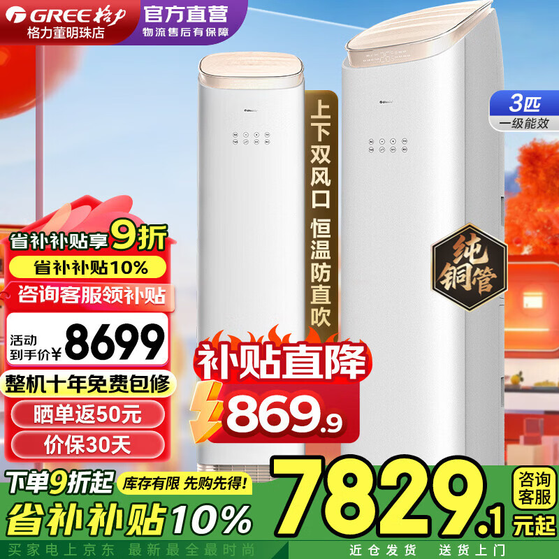 格力(GREE)空调3匹柜机 王者/京致 新一级能效 独特上下送风防直吹 变频冷暖客厅节能立柜式 国家补贴20% 王者 3匹 一级能效强劲稳定冷暖 格力