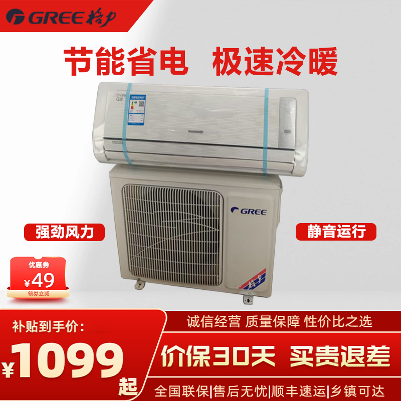 格力二手9成新空调挂机冷暖1P1.5匹家用两用节能能效卧室出租房公寓壁挂式空调 格力正品大1匹挂壁式冷暖型+普通款 标配合金管+人工安装服务