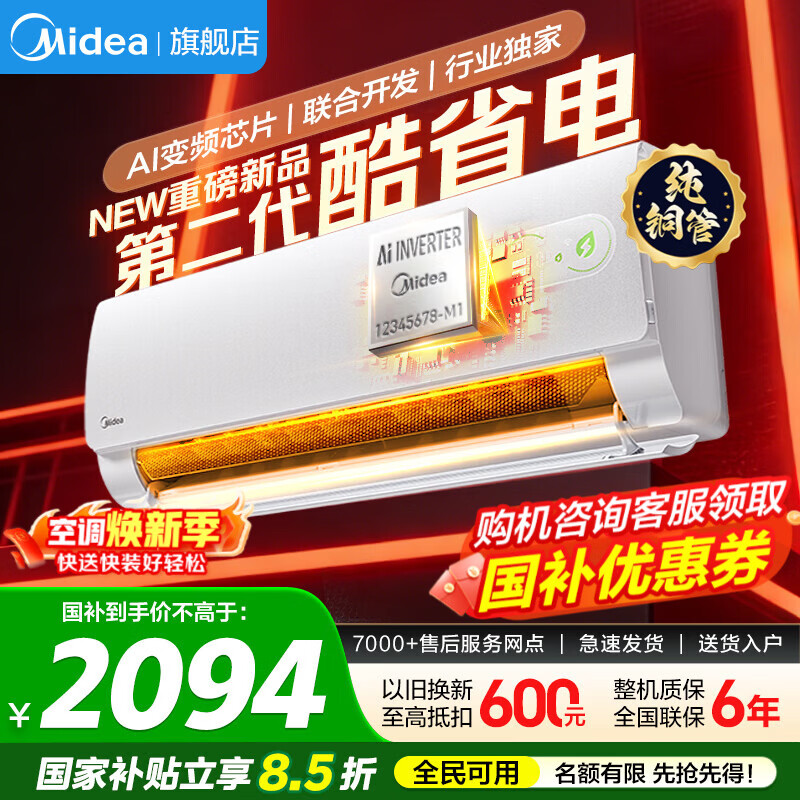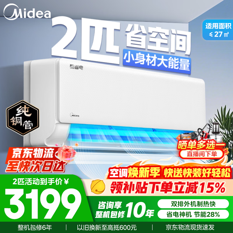 美的(Midea)空调2匹挂机酷省电 新一级能效变频冷暖家用卧室客厅壁挂式空调独立除湿智能家电以旧换新 酷省电 2匹 省电28%