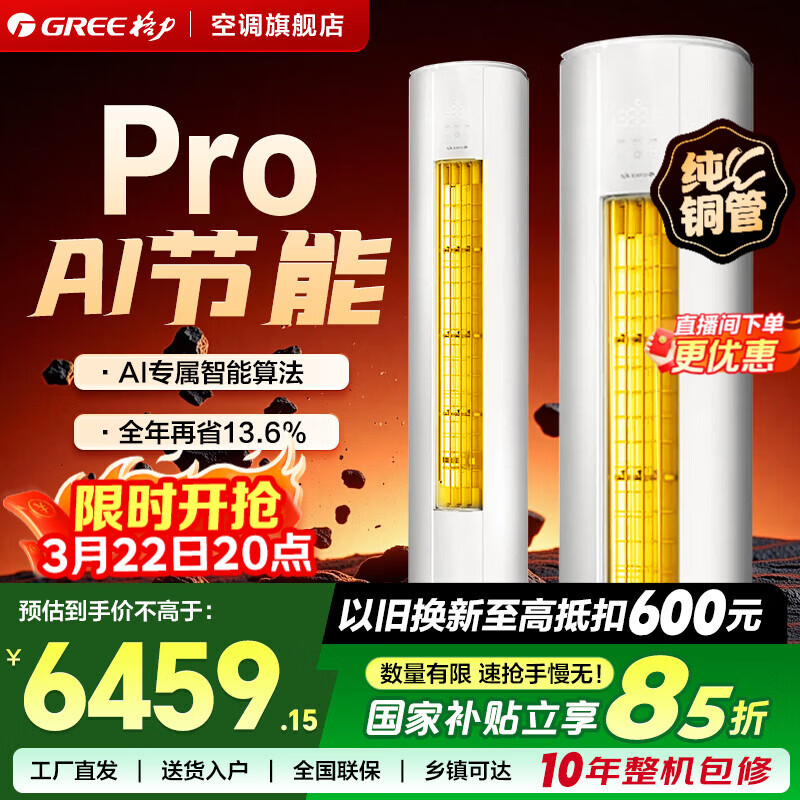 格力空调3匹柜机 云佳pro 一级能效 变频冷暖自清洁智能WiFi大风量客厅空调 圆柱立式柜机 国家补贴 云佳Pro 3匹 一级能效【咨询客服领优惠】