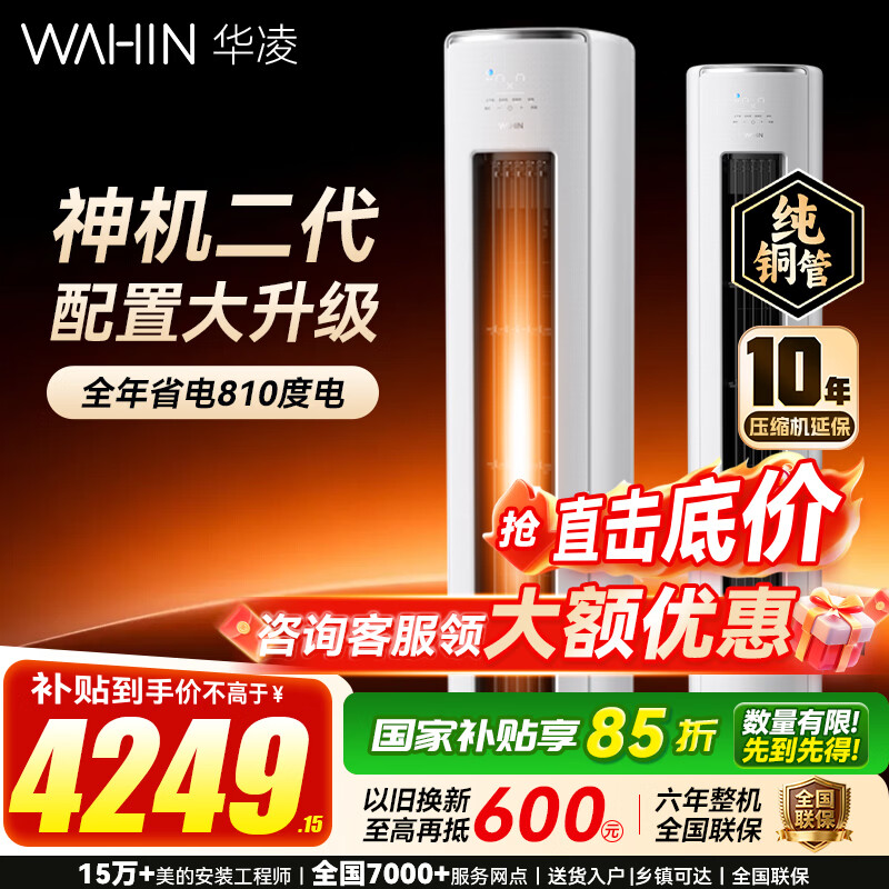 华凌空调3匹柜机 【旗舰款】超省电PRO/神机二代【双排铜管】 新一级能效 变频冷暖空调 以旧换新 神机二代 一级能效 3匹 【双排铜管】神机二代