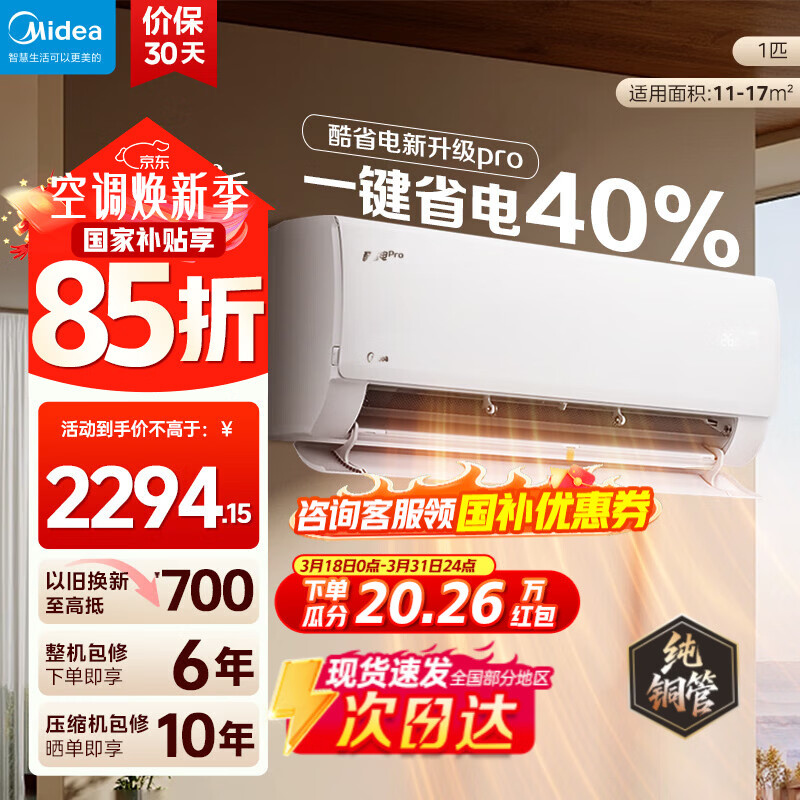 美的(Midea)国家补贴15% 酷省电二代PRO大1.5匹 空调挂机 新一级能效 ultra 变频节能省电冷暖家用卧室壁挂式 酷省电Pro 一级能效 大1匹