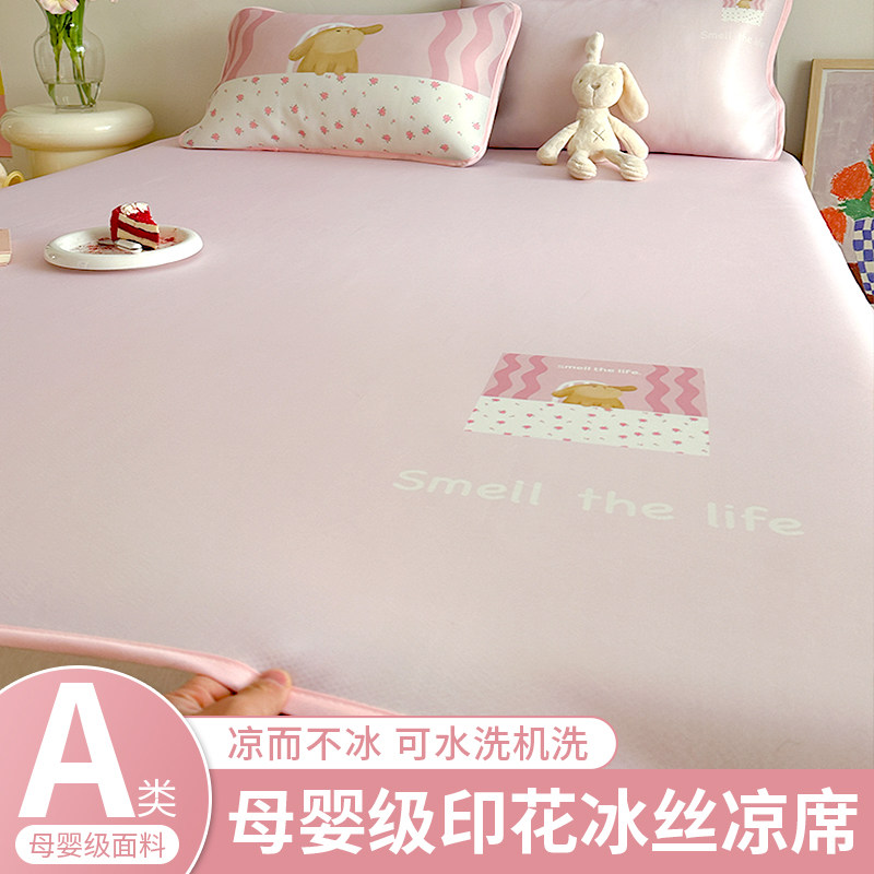 类藤席冰丝凉席夏天20新款可机洗床笠款儿童空调软席卡通小兔
