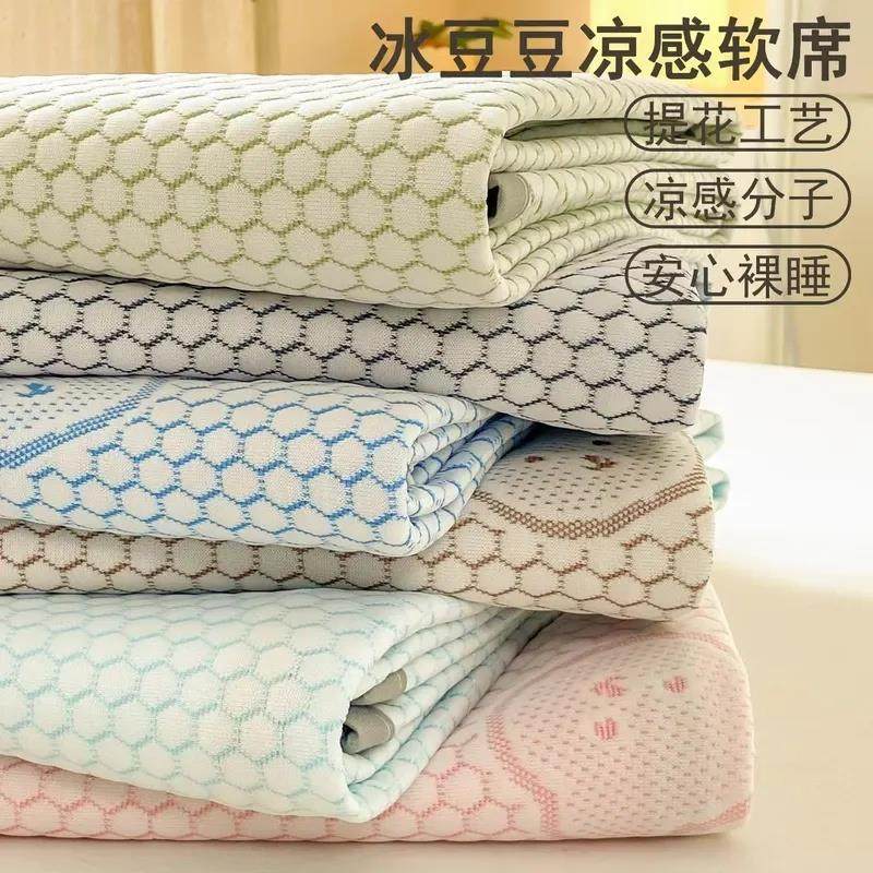 A类可水洗冰豆豆凉席提花可折叠双人空调冰丝席夏季宿舍软席垫子